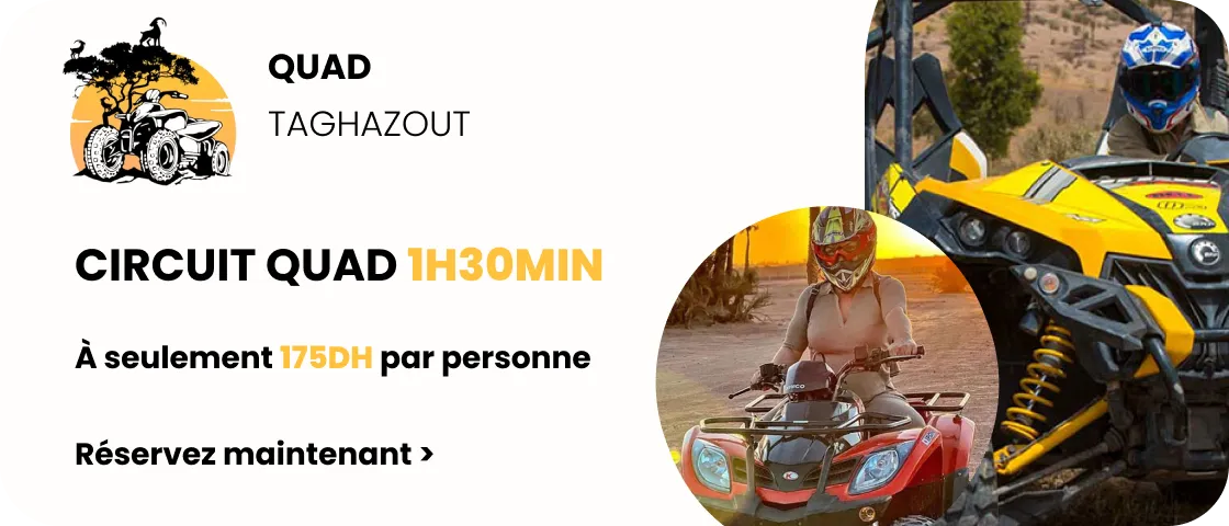 Plongez dans l’aventure avec notre offre en quad de 1h30 à 175 DH par personne ! 🏞️
