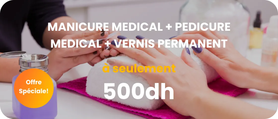 MANICURE MEDICAL + PEDICURE MEDICAL + VERNIS PERMANENT À SEULEMENT 500dh