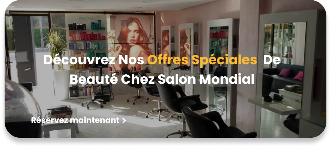Découvrez le Salon Mondial et ses offres de beauté exclusives. Du coiffage parfait à la relaxation totale, trouvez tout ce dont vous avez besoin pour vous sentir resplendissant(e).